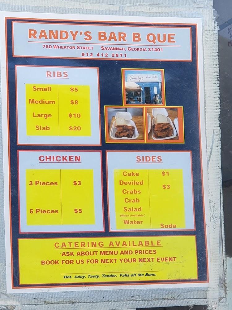 Welcome to Randy's Bar-B-Q, your go-to spot in Savannah for mouthwatering grilled specialties and a laid-back atmosphere. Located at 750 Wheaton St, we offer a delightful menu featuring traditional BBQ favorites like tender ribs and signature sauces. Enjoy our cozy dining space or opt for takeout and delivery services, perfect for students and tourists alike. With an affordable price range, you can savor our locally inspired dishes, whether for a solo lunch or a casual dinner. We’re open from Tuesday to Saturday, so come indulge in the authentic taste of Southern BBQ that Randy's is renowned for!
